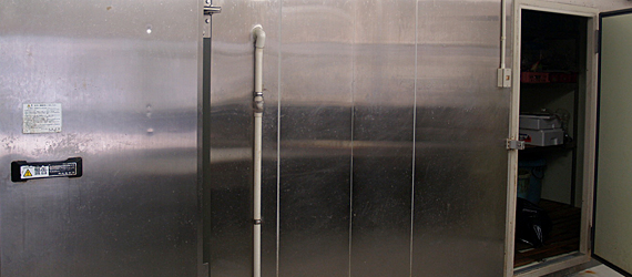 大容量の冷凍・冷蔵庫。入荷のない休日や市場の休みに対応すべく十分なストックスペースを確保。