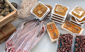 貝類、海草、うなぎ、川魚などを豊富に取り揃えています。